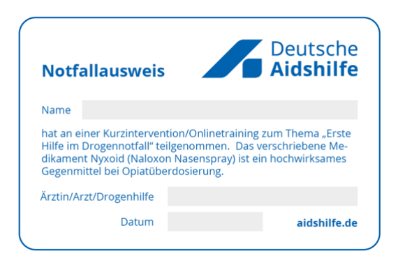 Nach dem Test bekommst du ein Zertifikat für den Erhalt eines Naloxon-Nasensprays.